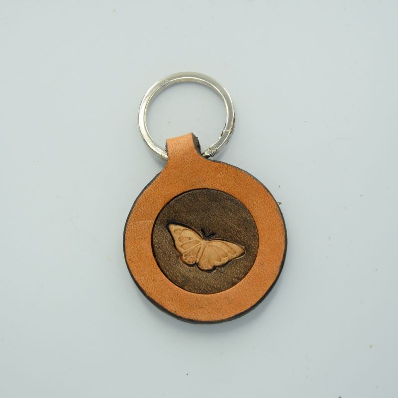 Kožený přívěsek na klíče (kulatý) - motýl