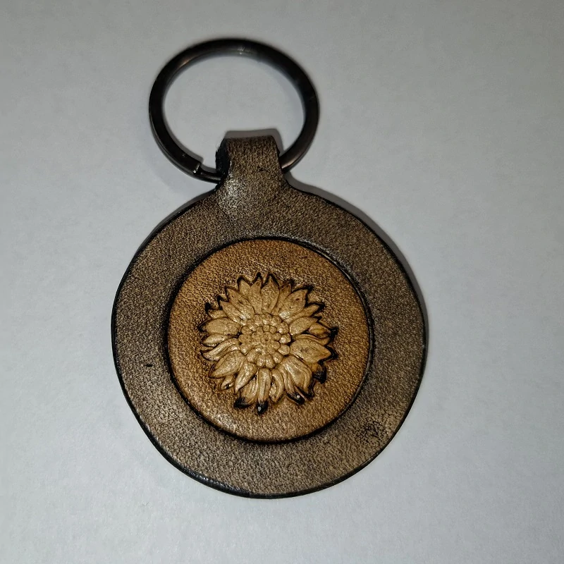 Kožený přívěsek na klíče (kulatý) - slunečnicedo týdne 2 ks145,00 Kč/ ks119,83 Kč bez DPH