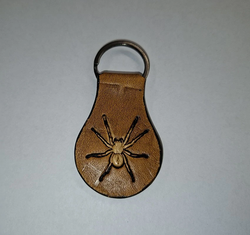 Kožený přívěsek na klíče (slza) - pavouk